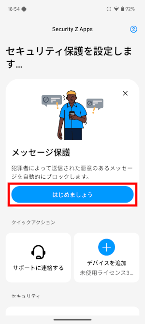 1Security Z Apps を起動し、「はじめましょう」をタップしてください。