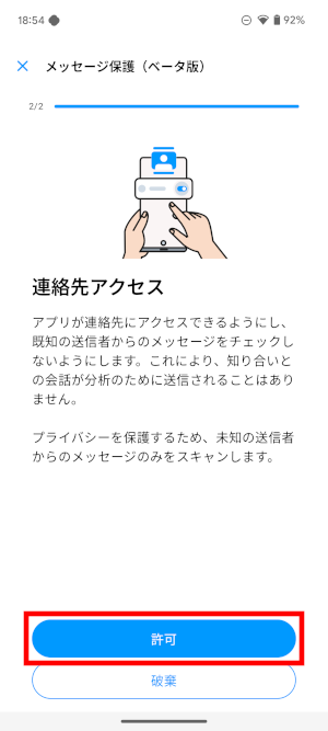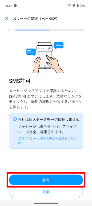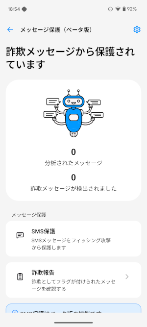 7「詐欺メッセージから保護されています」と表示されたら設定完了です。